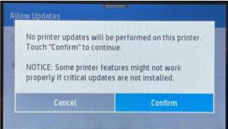 Below is an example of a standard Non-HP/Aftermarket cartridge message that end-users will see whenever a Non-HP/Aftermarket cartridge is installed. This message has nothing to do with firmware updates. Select OK to clear. Message is only present at time of install.