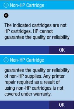 When you first install the cartridge, you may see the message that a “used” cartridge has been installed or you may see a message that a “Genuine HP Cartridge” has been installed. In either scenario, Just Click OK. (This is one time only at install)